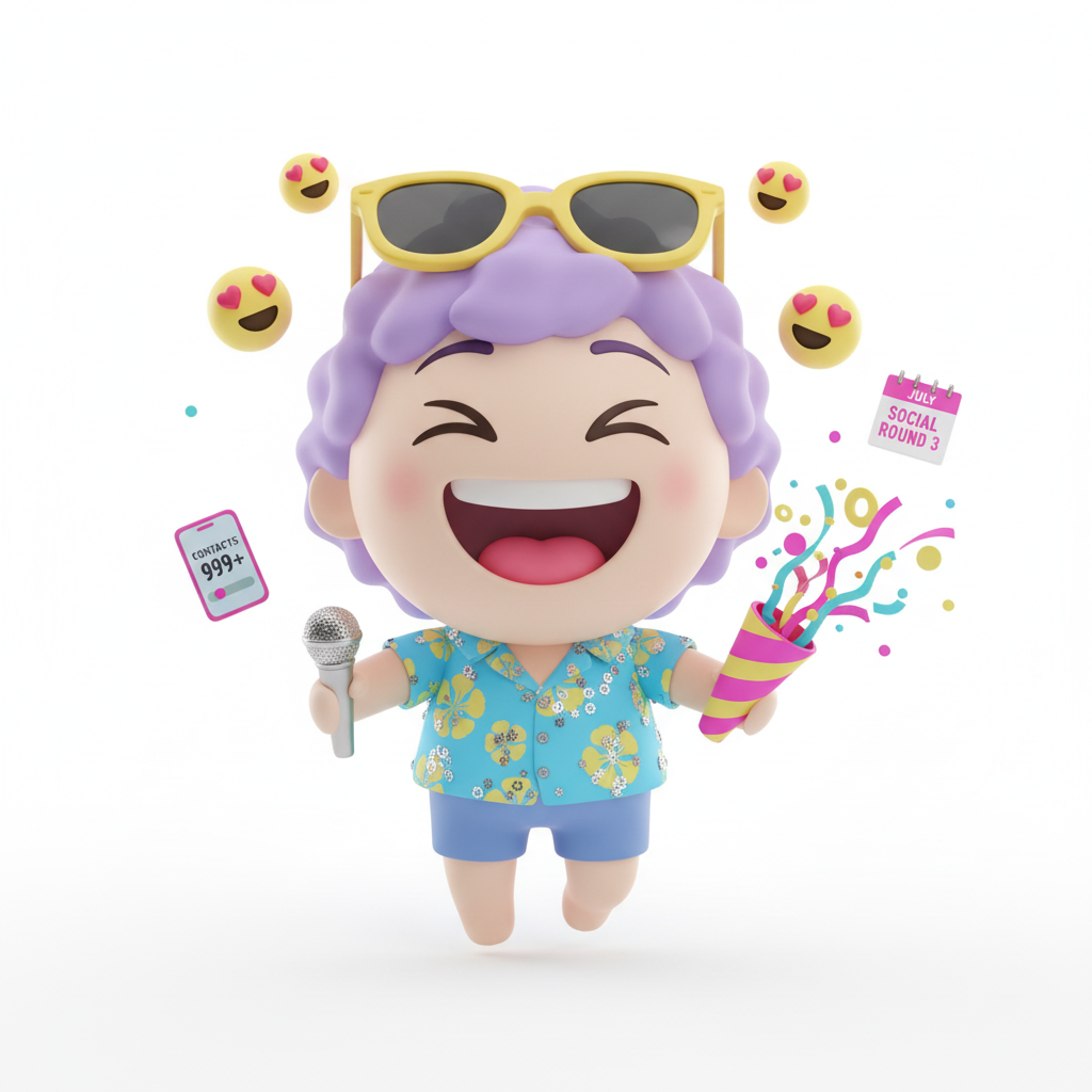 你的通讯录长度约等于一本中型城市的黄页,虽然叫得出名字的可能不到一半——没关系,重要的是制造快乐,不是记住名字。 你是最先发起局的人、也是最后离开的人。 有时候你得在两个局之间进行高难度的"时空穿越"。 至于什么时候留点时间给自己?排不开,下周再说。
